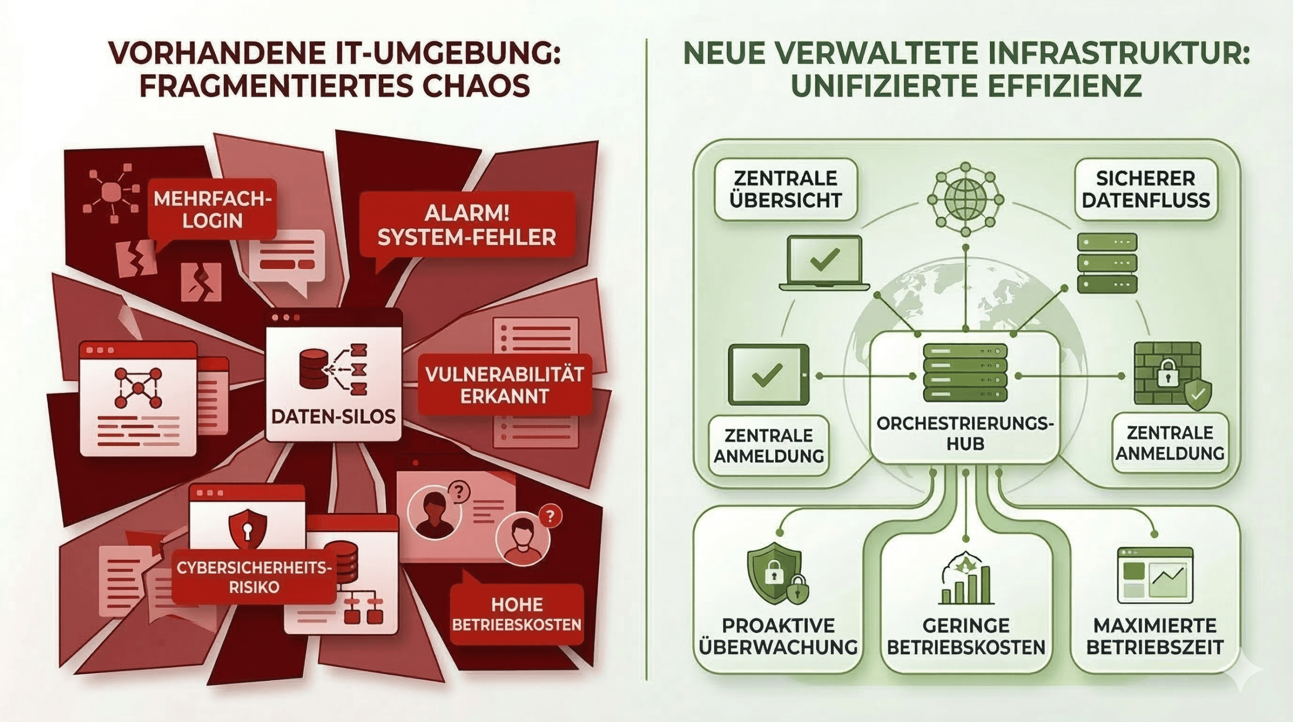 Einzelne Lösungen wurden ergänzt, Zuständigkeiten haben sich verteilt und gleichzeitig steigen Sicherheitsanforderungen, betriebliche Risiken und regulatorischer Druck.